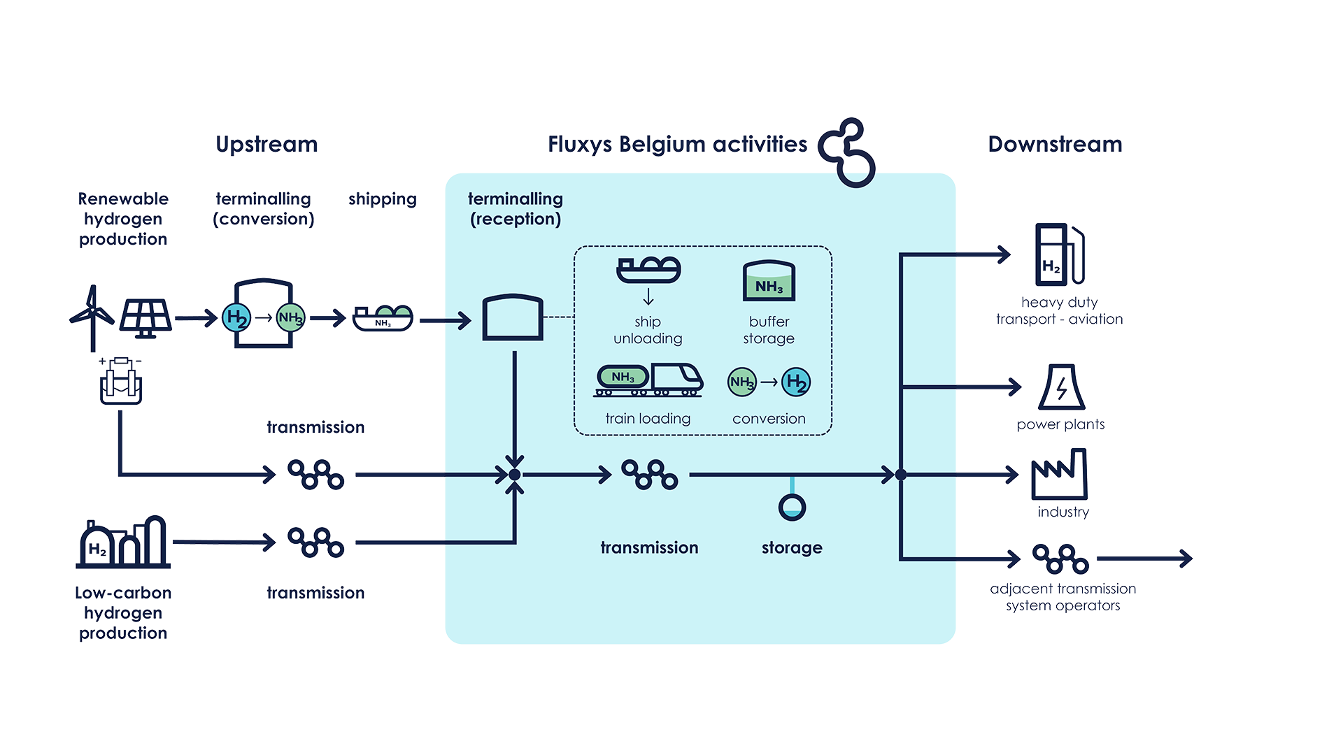 As a wholly owned subsidiary of Fluxys Belgium, together with the Fluxys group, we are putting our backbone into our joint ambition to offer customers the capacity to transport 30 TWh of hydrogen a year in the 2030s.