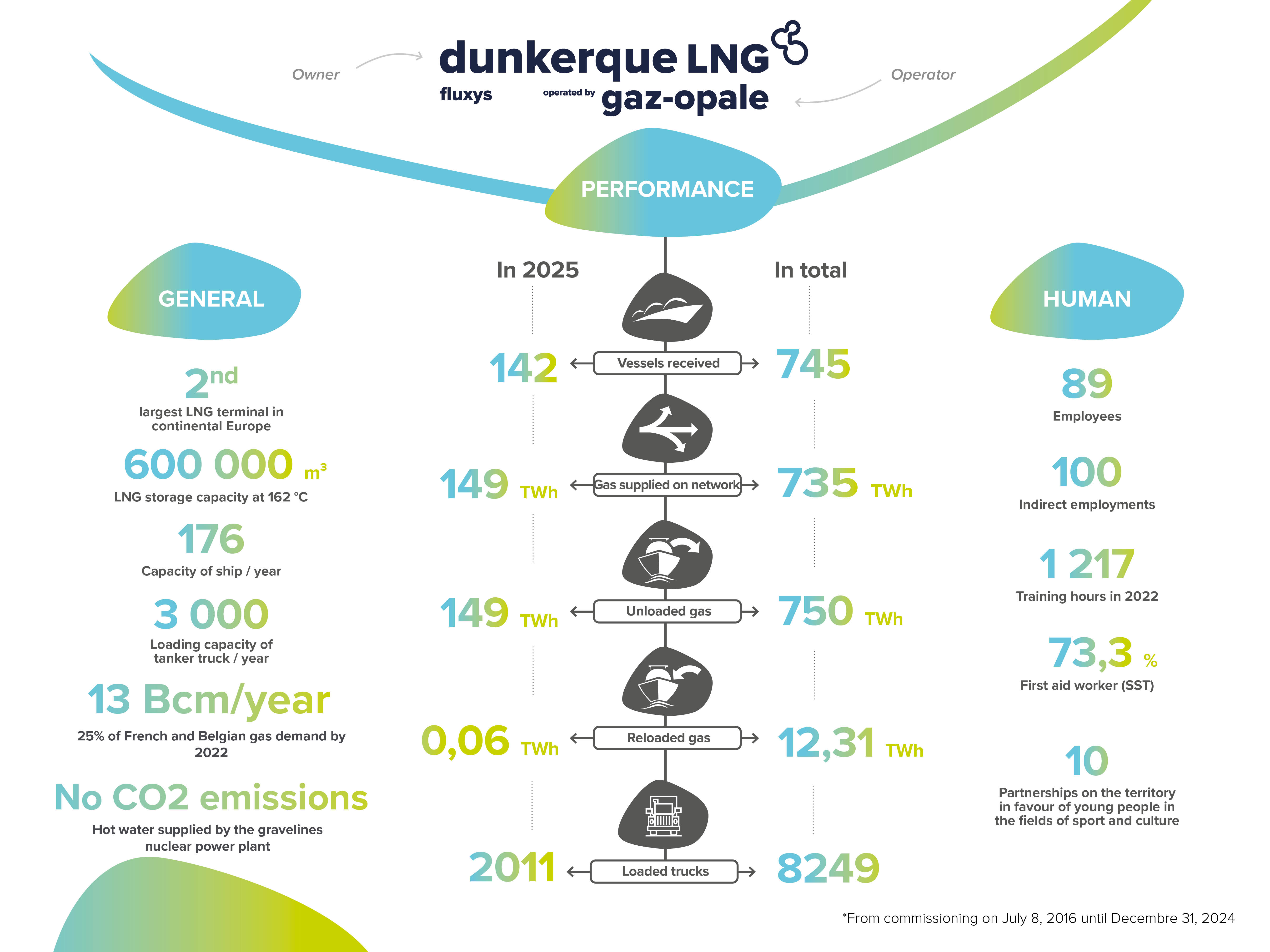 Dunkerque LNG is the owner and operator of the Dunkerque LNG terminal, which began commercial operations on January 1, 2017. Its subsidiary, Gaz Opale, is the terminal operator.