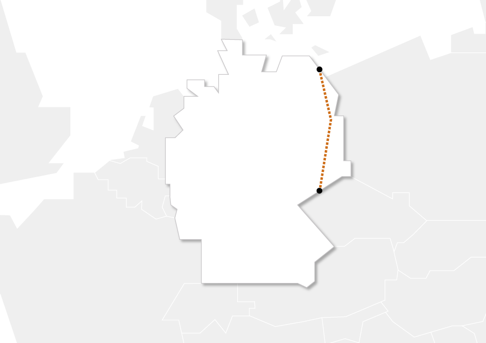 | Länge der Pipeline | Strang 1 – 480 km Lubmin nach Deutschneudorf Strang 2 - 329 km Lubmin nach Weissack |