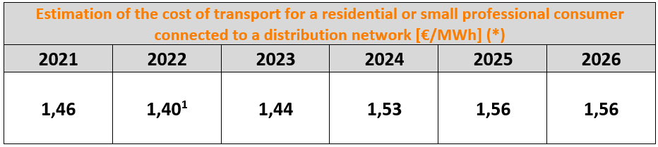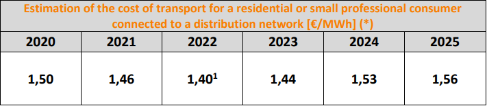 Estimation of the cost of transport of Fluxys Belgium in the total gas bill of residential and small professional consumers in Belgium