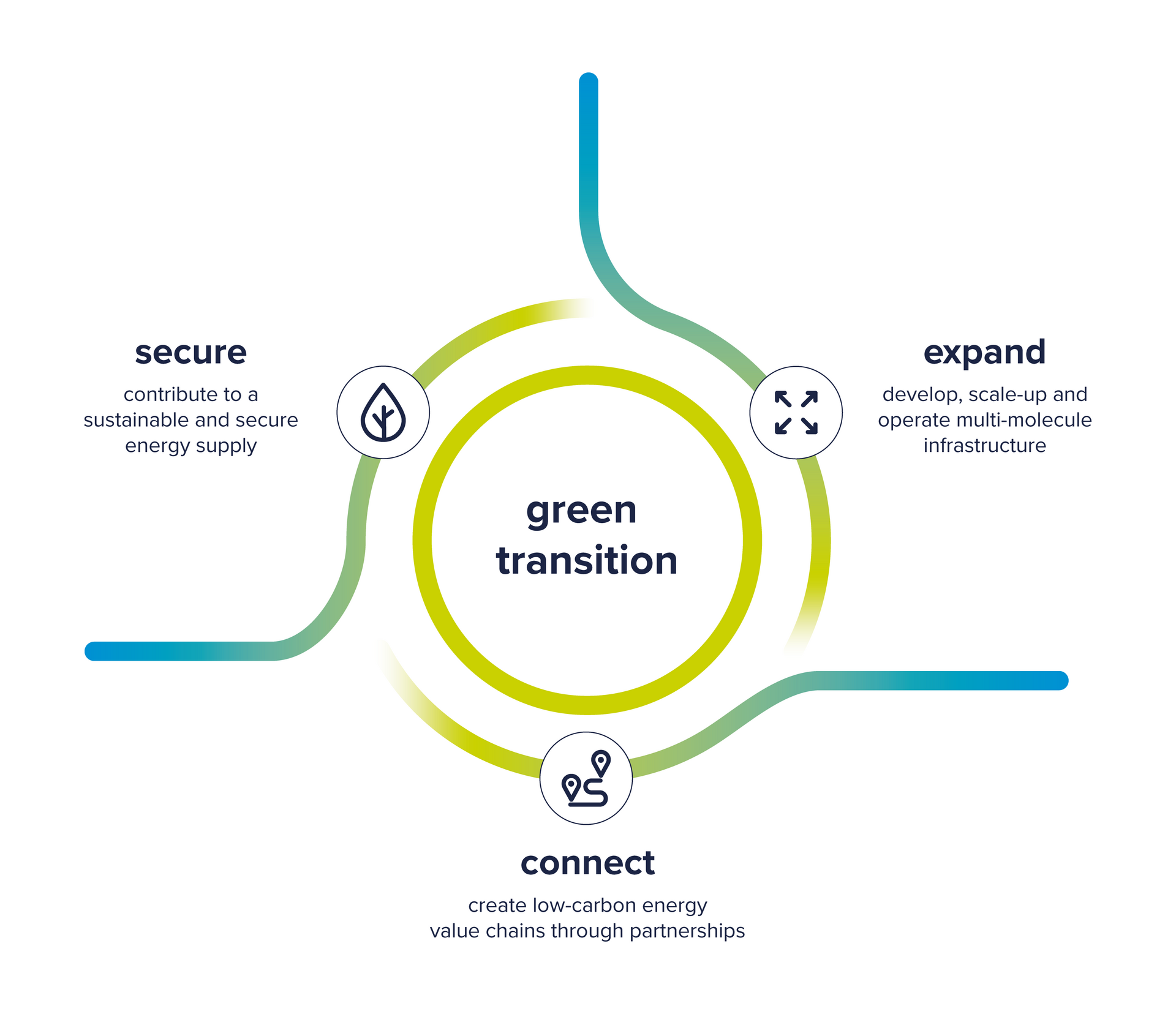 As a key infrastructure partner, we are building a sustainable and cleaner energy future. That is our purpose. With our terminalling, transmission and storage infrastructure for different molecules, we bring energy where it is needed – today and tomorrow.