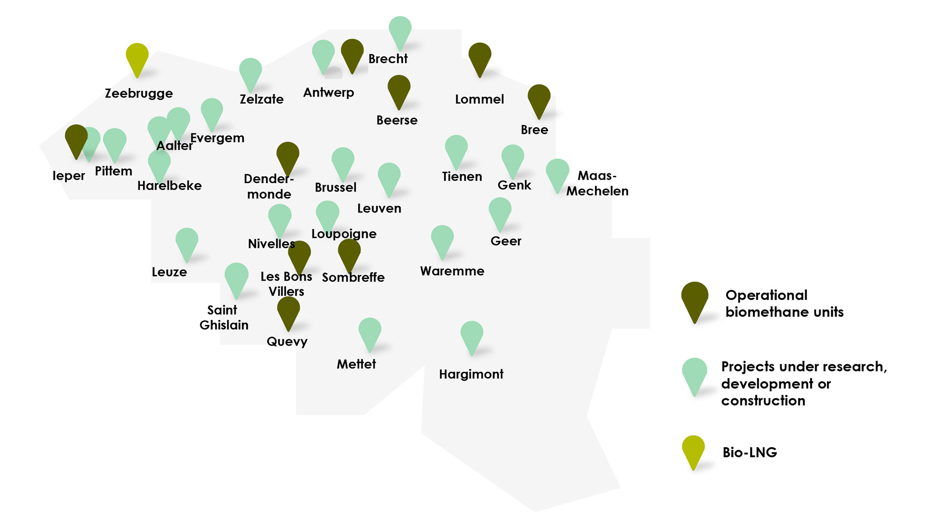 In Belgium the production of biomethane is getting off the ground. Ten biomethane units are currently operational and about 20 projects are in various stages of research, development or construction. The LNG terminal in Zeebrugge makes bio-LNG available for the market.