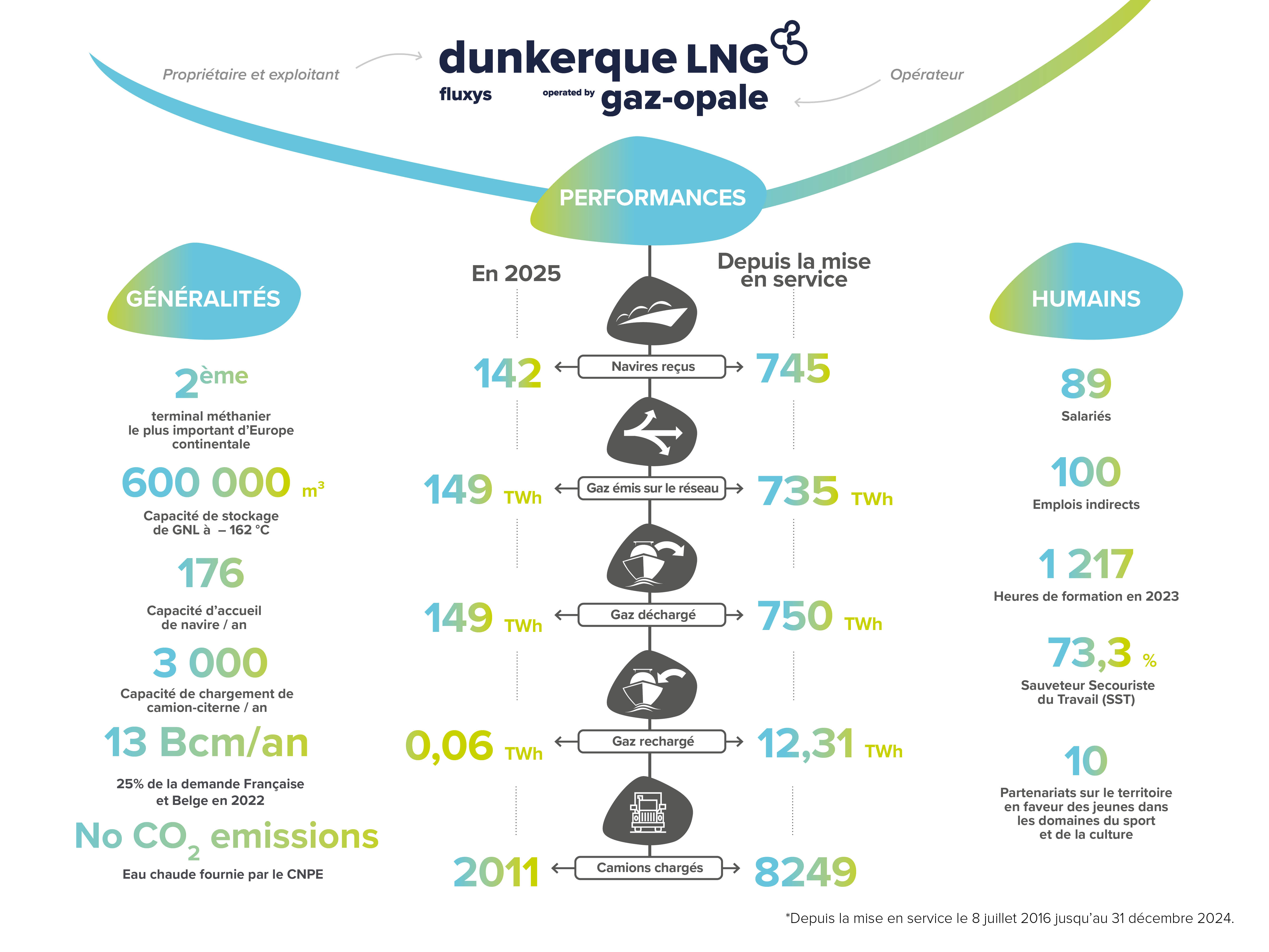 Dunkerque LNG est le propriétaire et exploitant du terminal méthanier de Dunkerque mis en service commercial le 1er janvier 2017. Gaz Opale, sa filiale, en est l’opérateur.