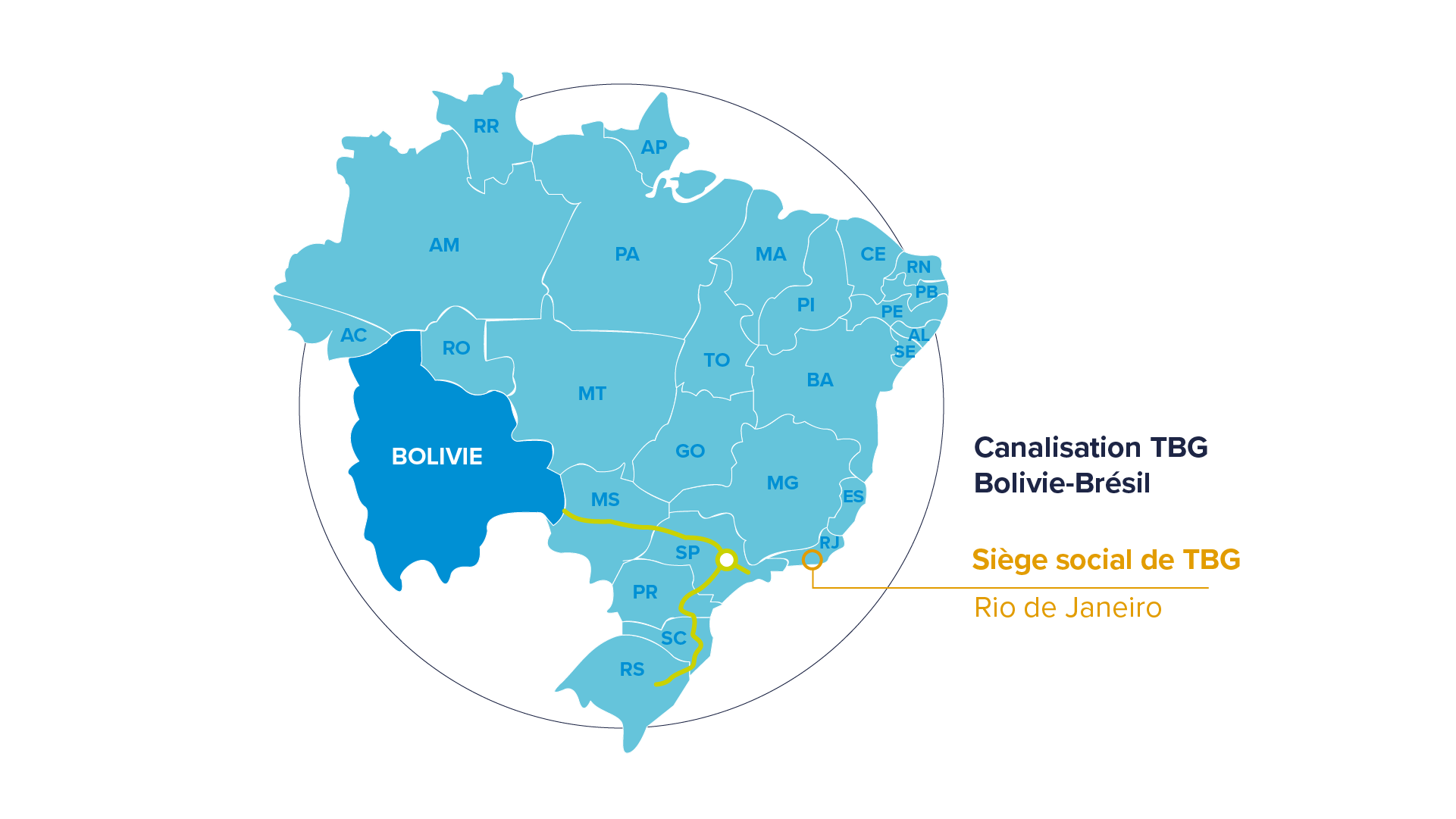 TBG (Transportadora Brasileira Gasoduto Bolívia-Brasil) possède et opère la section brésilienne de 2.600 km de la canalisation Bolívia-Brasil d’une capacité de transport allant jusqu’à 30 millions de mètres cubes par jour de gaz naturel brésilien et bolivien à destination des principaux marchés au Brésil.