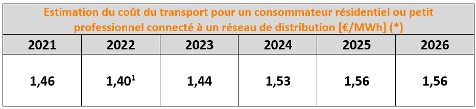 Estimation du coût du transport de Fluxys Belgium dans la facture totale du gaz des consommateurs résidentiels et petits professionnels en Belgique