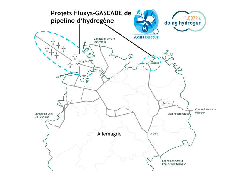 Doing hydrogen est le projet de canalisations à grande échelle destiné à lancer le marché de l’hydrogène dans l’est de l’Allemagne. Il devrait être opérationnel d’ici 2027. Le projet GASCADE-Fluxys comprend la construction d’une nouvelle canalisation d’hydrogène stratégique de 50 kilomètres partant de la région de Rostock sur la mer Baltique en direction du sud. Elle fera ainsi partie du réseau d’hydrogène de l’est de l'Allemagne. Cette infrastructure créera un hub d'hydrogène puissant qui reliera les centres de production, de stockage et de demande d’hydrogène.