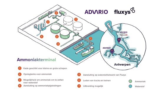 Fluxys en Advario slaan de handen in elkaar voor de ontwikkeling van een ultramoderne nieuwe ammoniakterminal (NH₃) op de site van Advario Gas Terminal in Antwerpen. Dit strategische partnerschap met Advario, een toonaangevende partner in de logistiek van ammoniak en opslag met een wereldwijd netwerk, wil tegemoetkomen aan de groeiende vraag naar de invoer van duurzame moleculen in Europa en de overgang naar een koolstofarme toekomst versnellen.