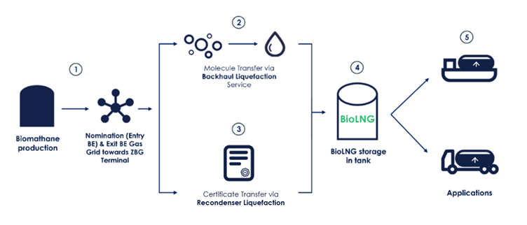 Here is the process to obtain Bio-LNG in the Zeebrugge LNG Terminal via Equivalence Liquefaction: