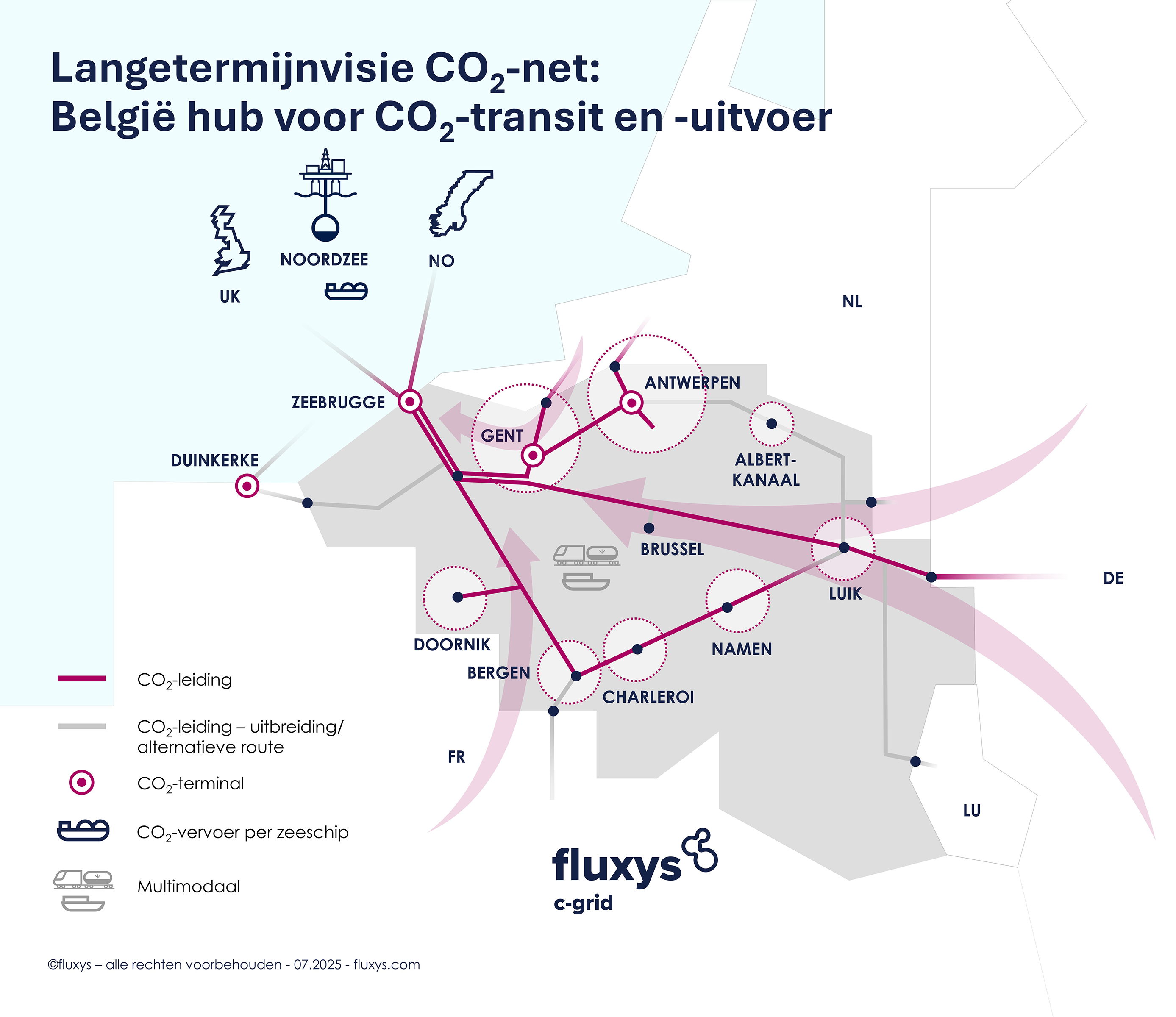 De aanstelling als “CNO” voor het Waals Gewest is een belangrijke stap richting de decarbonisatie van de Waalse industrie. Vanuit Fluxys' decennialange expertise in gastransport werd in 2023 het dochterbedrijf Fluxys c-grid opgericht samen met Socofe, Pipelink en SFPIM met het oog op de planning, de ontwikkeling en het beheer van de CO₂-vervoersinfrastructuur in België.