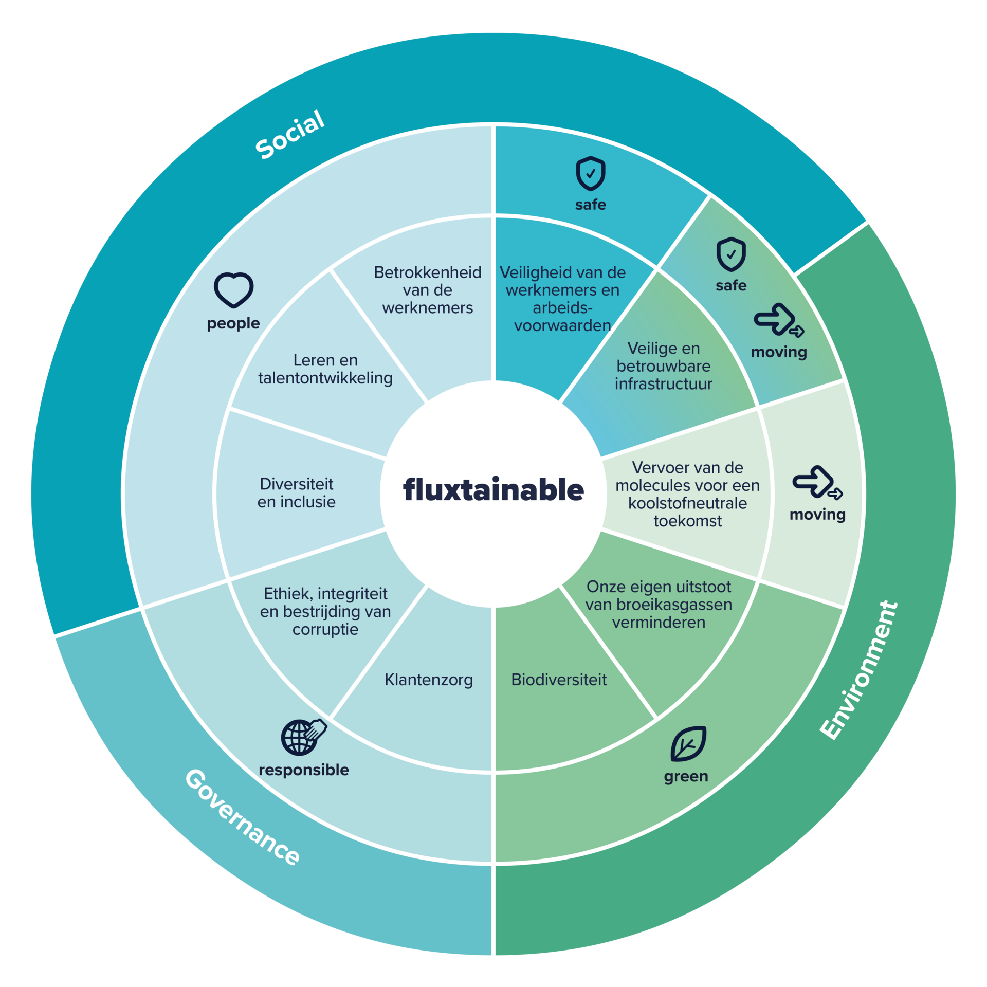 Fluxtainable is onze ESG-strategie. Hoe zorgen we ervoor dat we onze activiteiten in een langetermijnperspectief duurzaam ontwikkelen voor ons en voor het geheel van onze stakeholders? Tegelijk is Fluxtainable onze boordtabel om transparant te communiceren over de voortgang in onze duurzaamheidsprestaties.